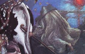 Nach einiger Zeit vergaß der Mann sein Versprechen. Als seine Frau heimkehrte, wusste sie sofort, was geschehen war. Sie schaute ihn an und sagte weinend: „Du hast in den Korb geschaut!“ Der Mann aber lachte nur und sagte: „Du dummes Weib, was soll das Geheimnis um diesen Korb? Da ist ja gar nichts drin!“ Aber noch während er dies sagte, wendete sie sich von ihm ab, ging in den Sonnenuntergang und ward auf Erden nie wieder gesehen.