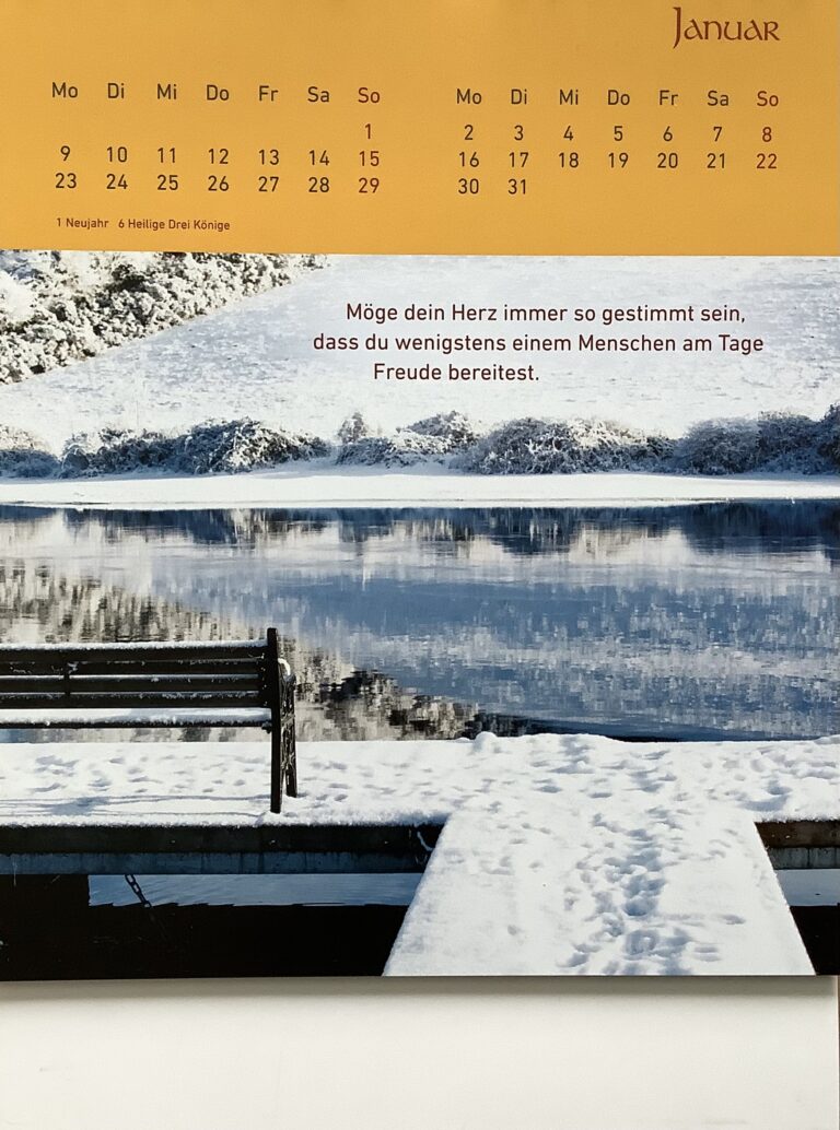 Zu Weihnachten bekam ich einen Kalender mit Segenssprüchen geschenkt. Auf dem Kalenderblatt vom Jänner steht: „Möge dein Herz immer so gestimmt sein, dass du wenigstens einem Menschen am Tage Freude bereitest.“